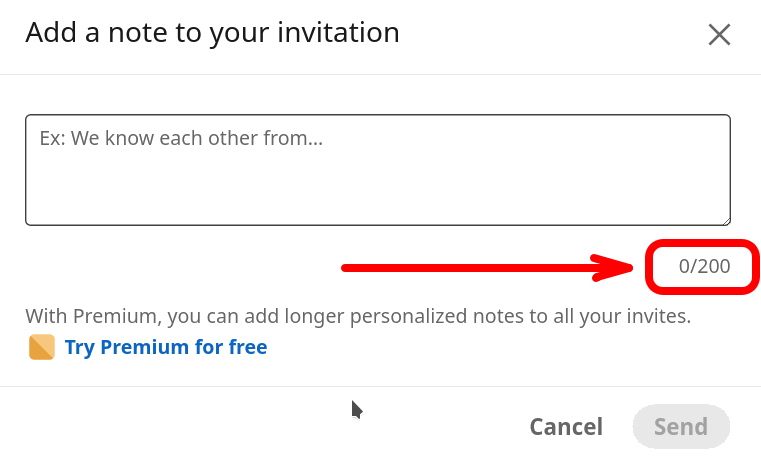 - Sie können Einladungen ohne Nachricht senden, um alle 150–250 wöchentlichen Einladungen von LinkedIn nutzen zu können. Löschen Sie dazu die Einladungstext komplett. In manchen Fällen kann dies sogar die Annahmerate erhöhen, da eine Einladung ohne Text neugierig macht und nicht wie ein Verkaufsversuch wirkt.