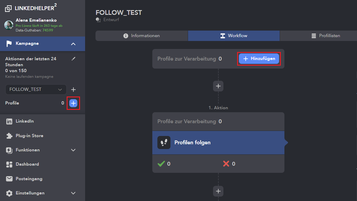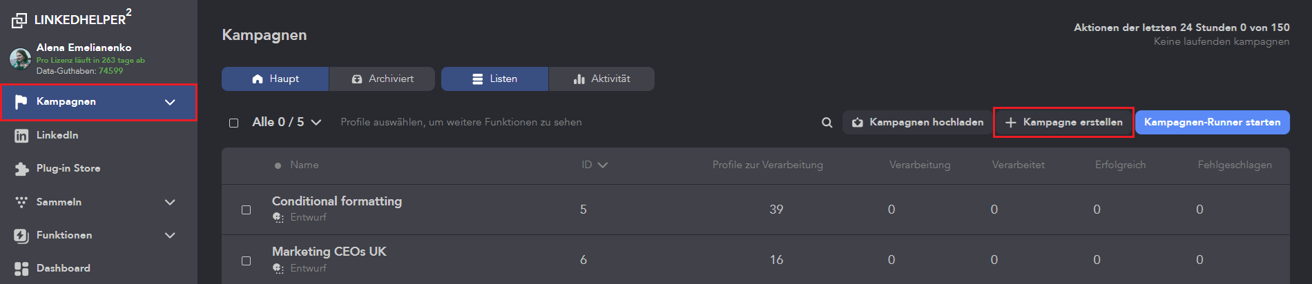 Eine ausführliche Anleitung finden Sie hier: Wie füge ich Profile zu einer Kampagne hinzu?