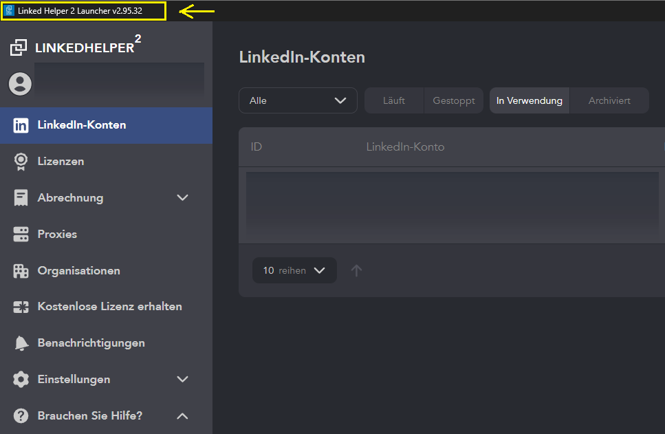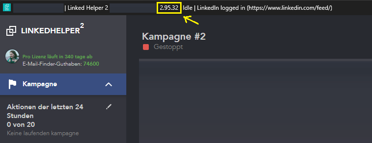 Linked Helper ist keine Cloud-Lösung, sondern arbeitet und speichert alle Daten lokal auf Ihrem Rechner. Weitere Informationen finden Sie in diesem Artikel. Wie jede andere Software muss auch Linked Helper von Zeit zu Zeit aktualisiert werden. Die aktuelle Versionsnummer finden Sie entweder in der Titelleiste der Instanz oder des Launchers: