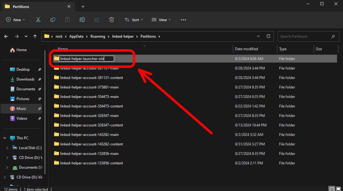 - Suchen Sie im geöffneten Verzeichnis den Ordner linked-helper-launcher und benennen Sie ihn in linked-helper-launcher-old um: