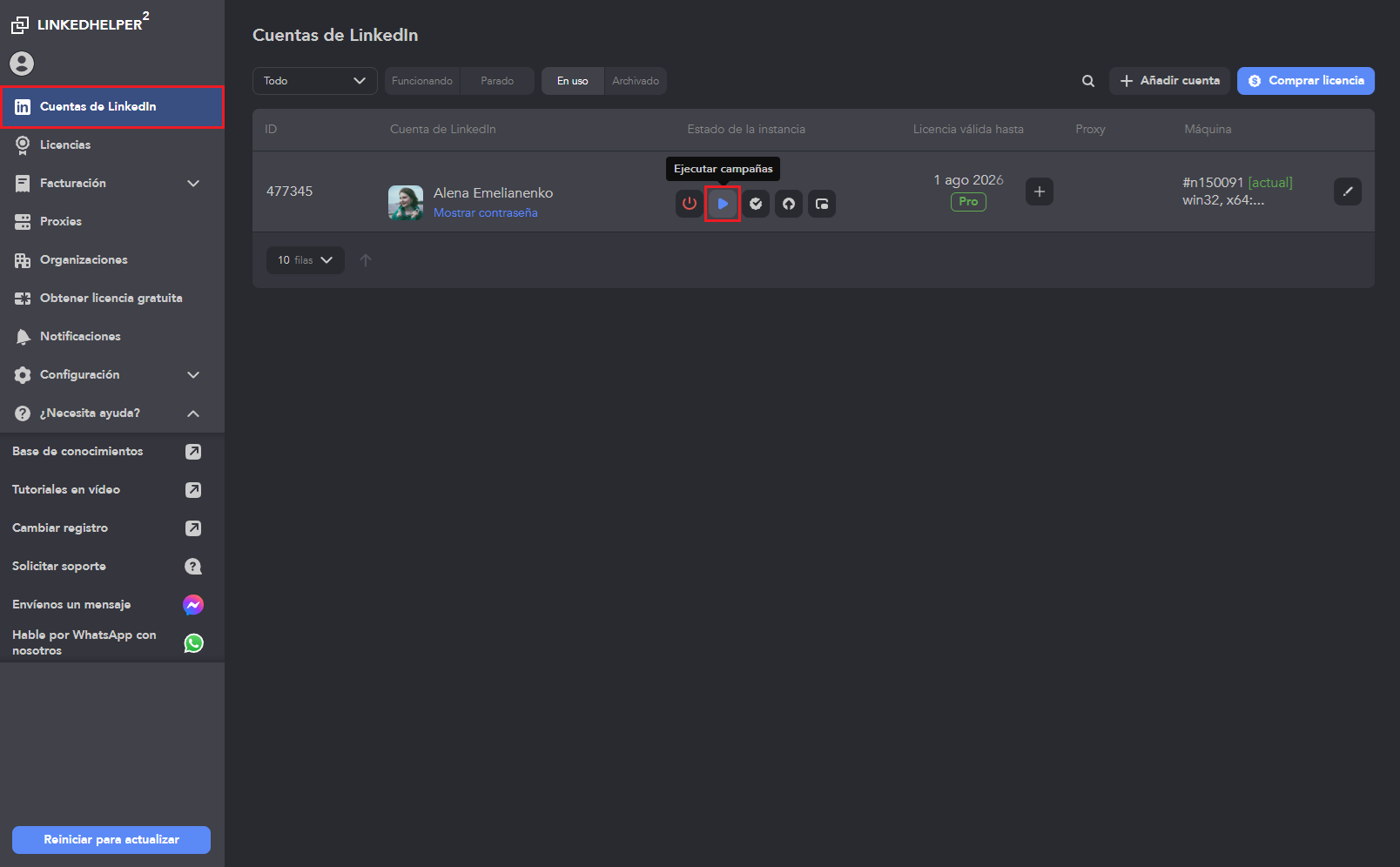 - in Linked Helper Launcher open LinkedIn Accounts menu;