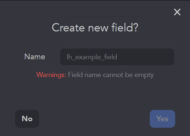 - Définissez les champs Nom et cliquez sur Oui :