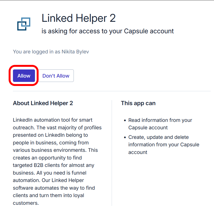 Connecter Linked Helper à Capsule CRM