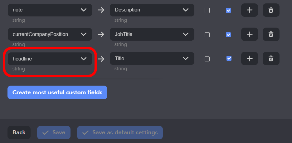 - Faire correspondre les champs Linked Helper avec les champs du CRM.