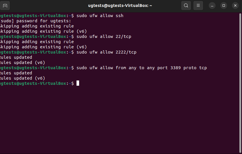sudo ufw allow from any to any port 3389 proto tcp - Depois, ative o firewall usando o comando: