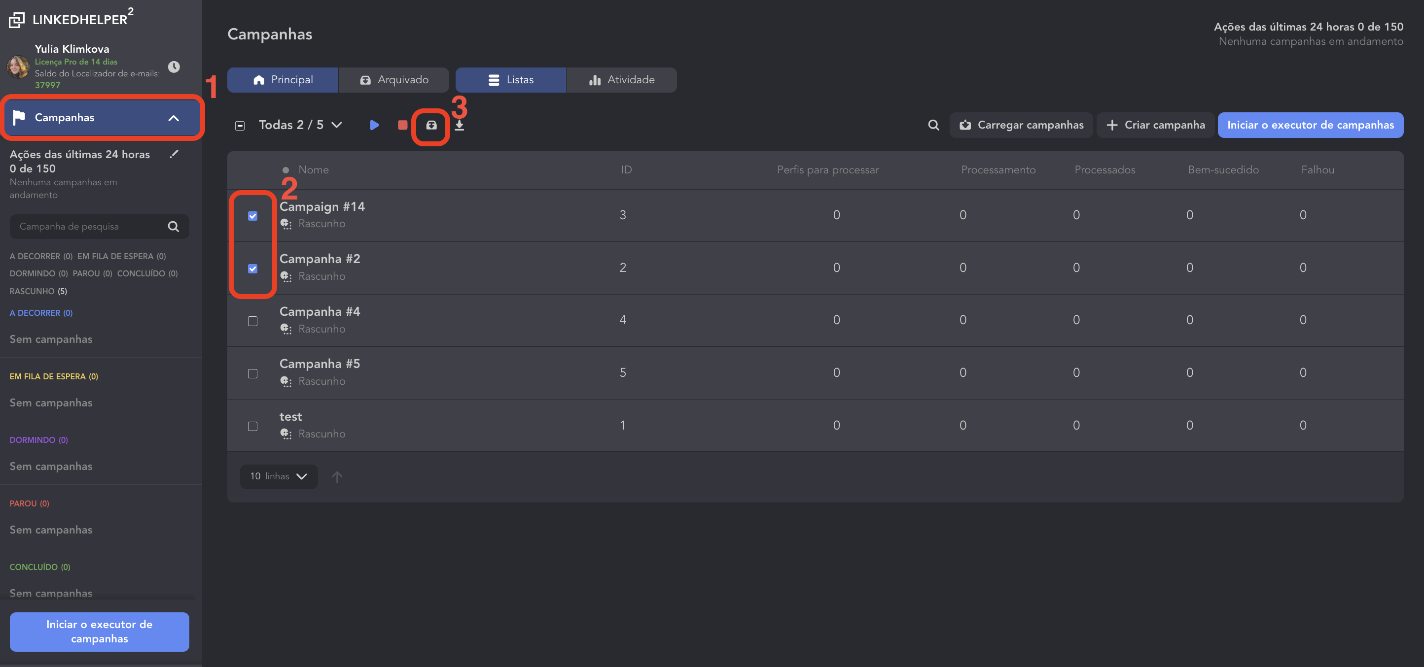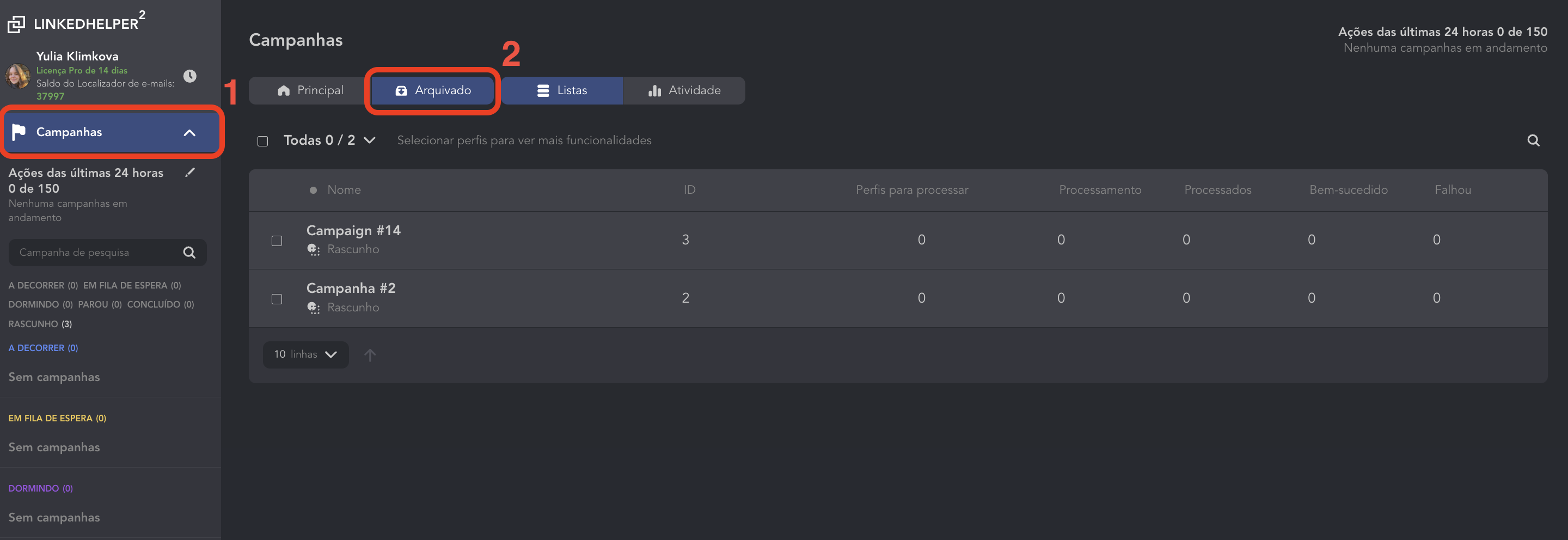 Muitos dos nossos clientes, especialmente recrutadores, criam várias campanhas no Linked Helper, uma para cada projeto. E algumas dessas campanhas precisam ser arquivadas após a conclusão.