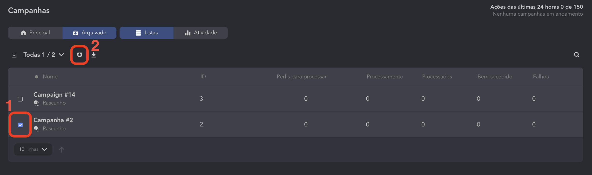 Nota: Só é possível arquivar/desarquivar campanhas após instalar o plug-in Multi-campaigns runner